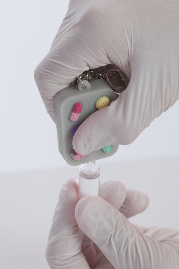 Sólo tienes que introducir el extremo de la ampolla en la apertura del Rompemapollas® apurado y romper sin miedo. Deja de apretar para que caiga el fragmento. ¡Recuerda hacerlo en un sitio seguro!